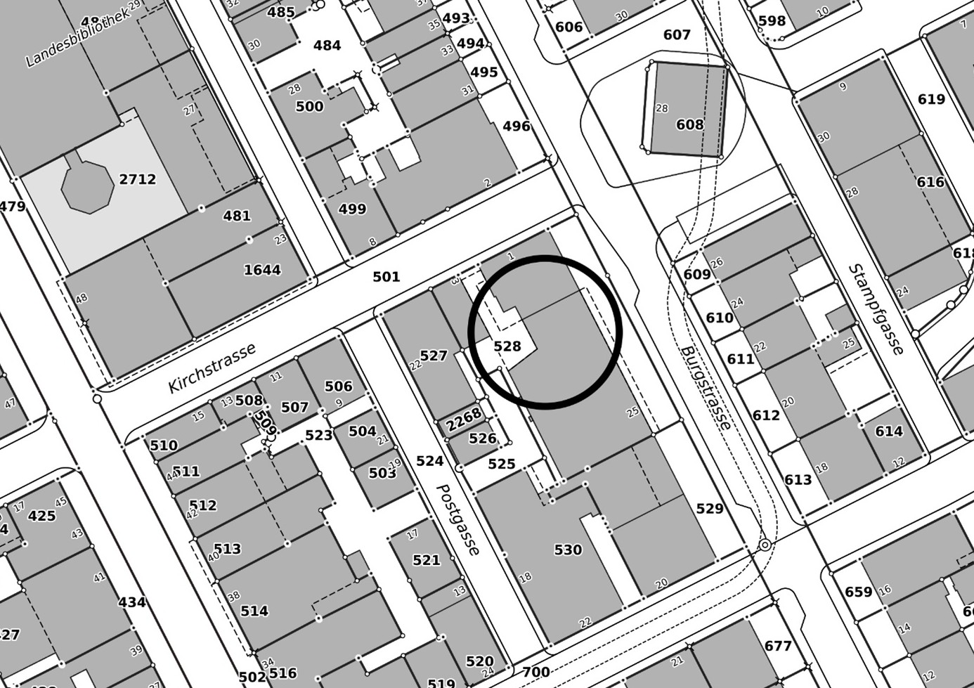 Abbildung 1. Betroffene Parzelle 528 in Glarus (ohne Massstab, Plan genordet)